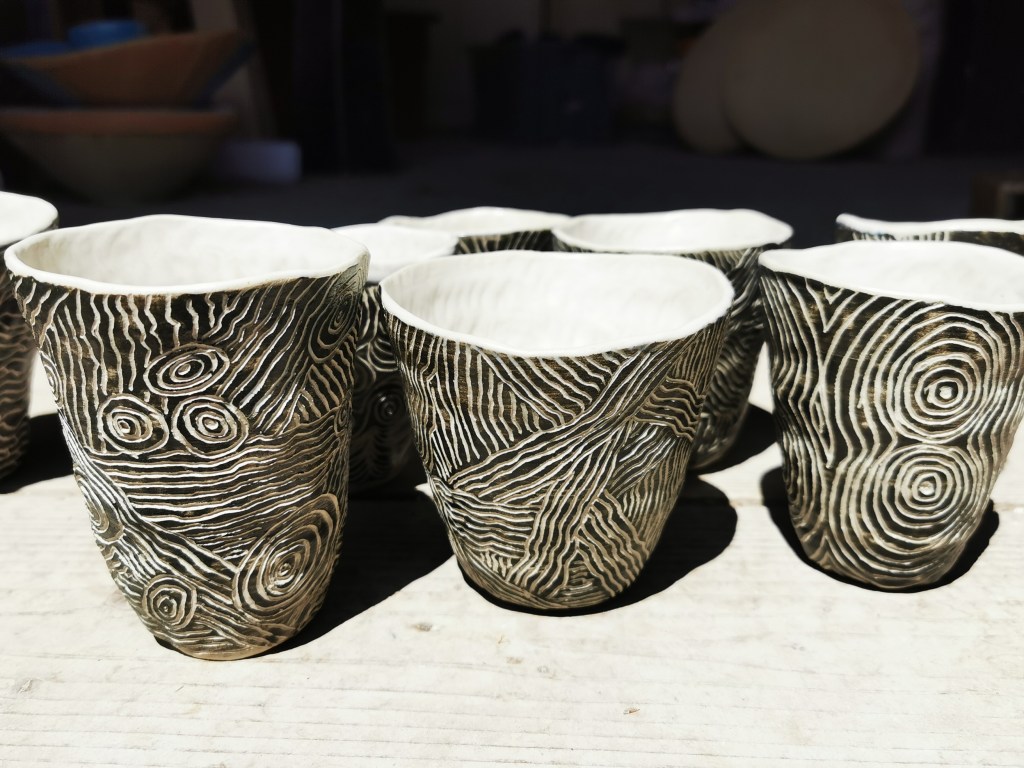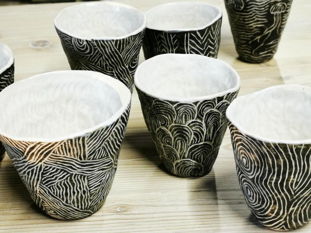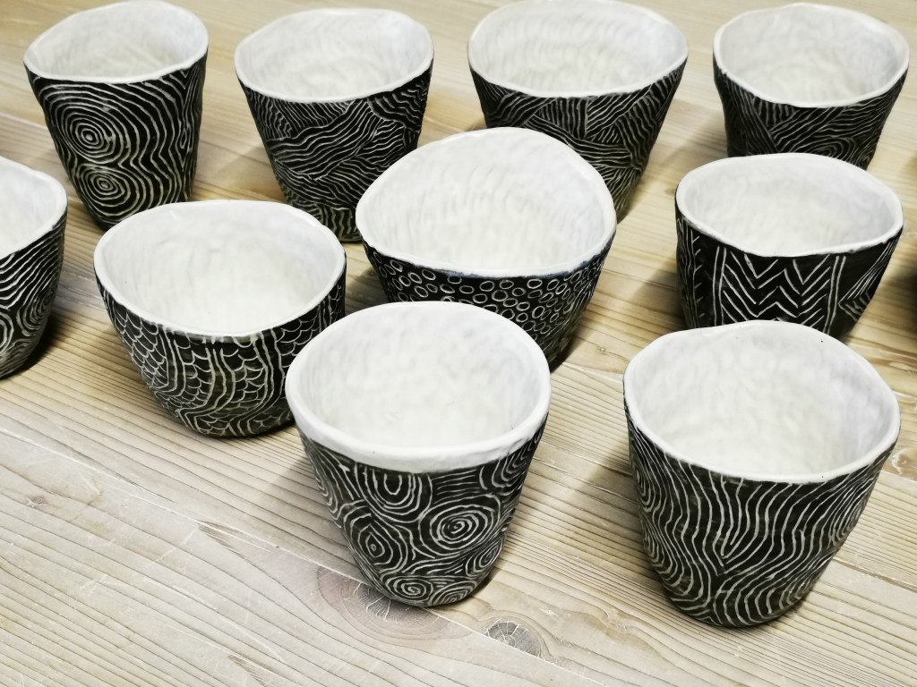Ho usato la tecnica a pizzico per queste tazze , come riabilitazione a seguito di un polso rotto…Funziona !!!!
