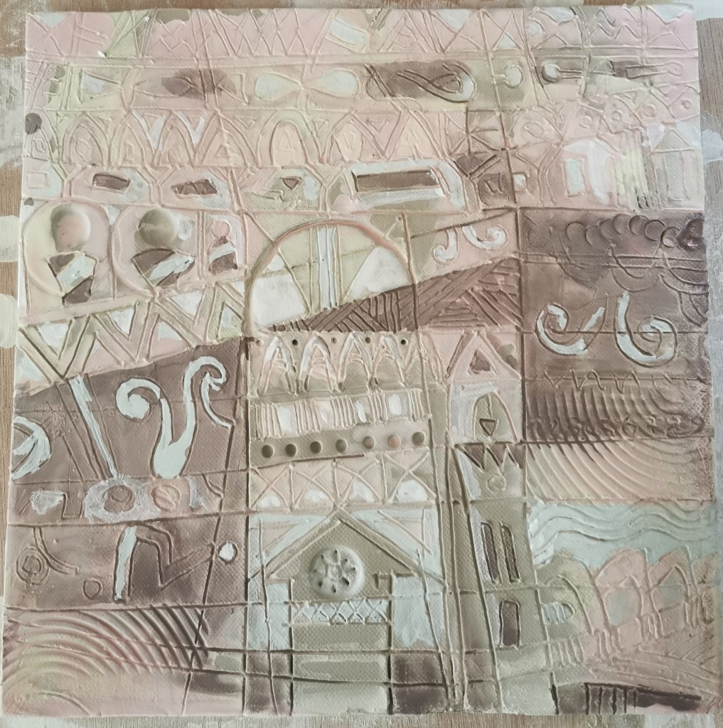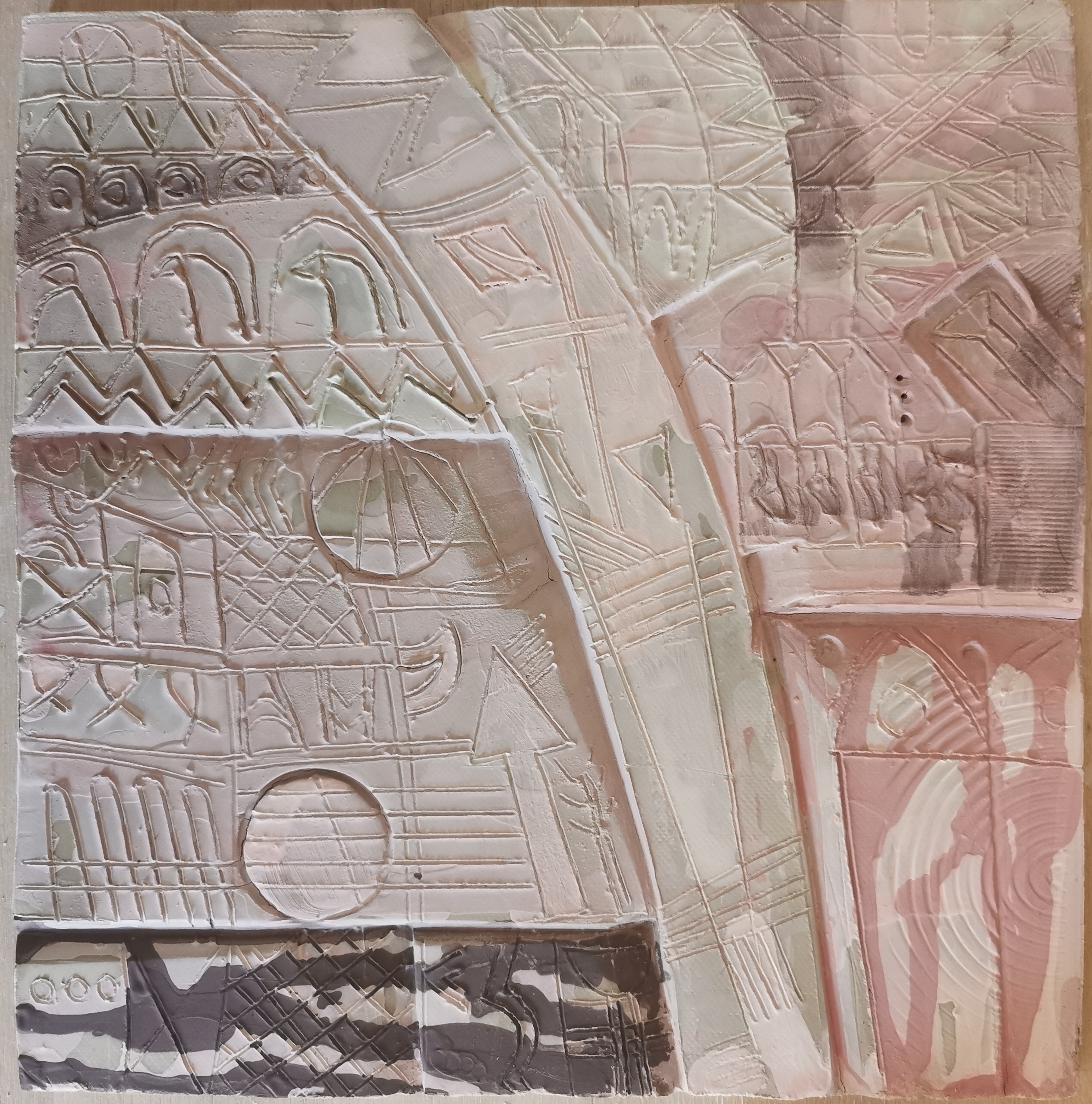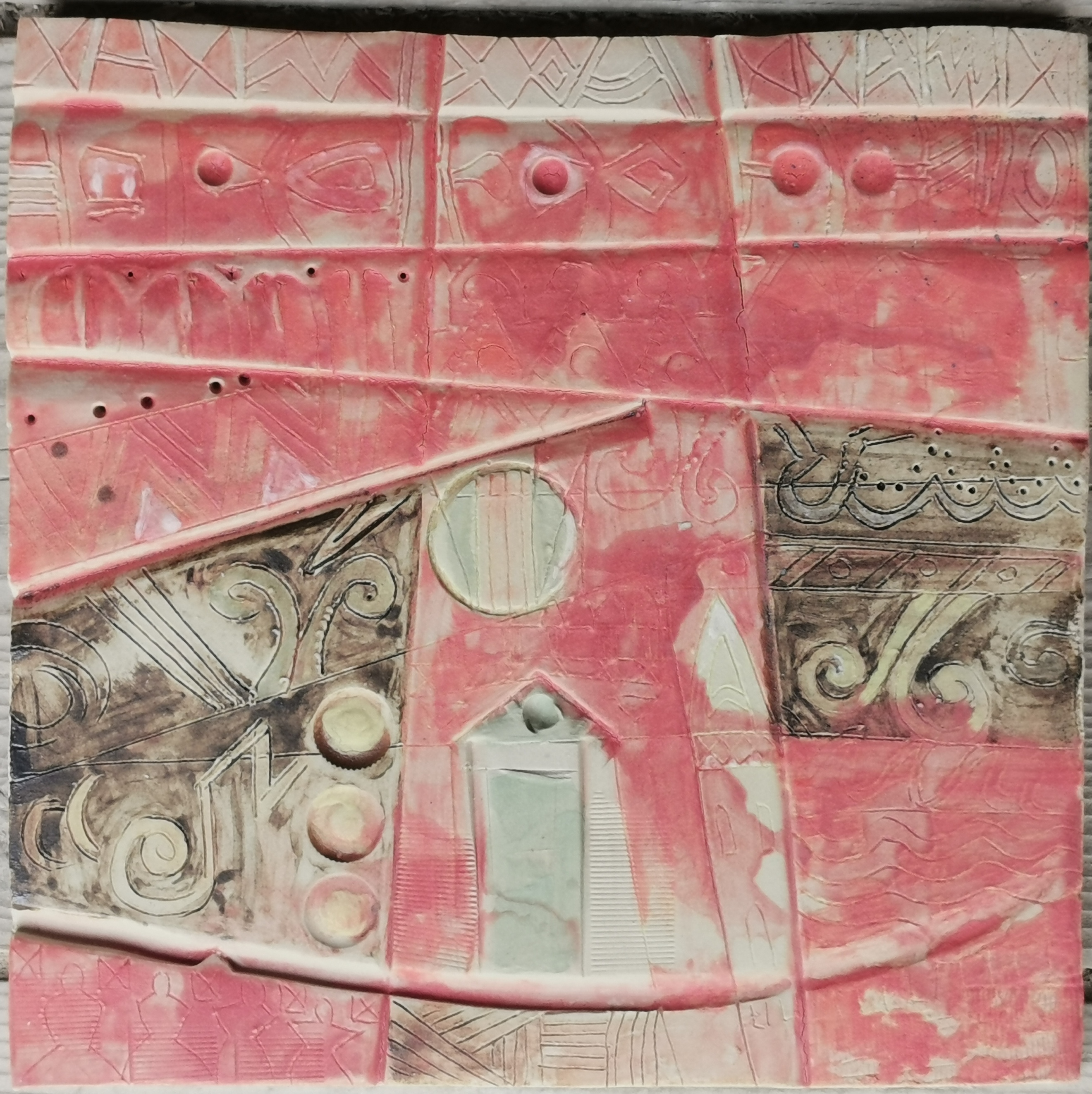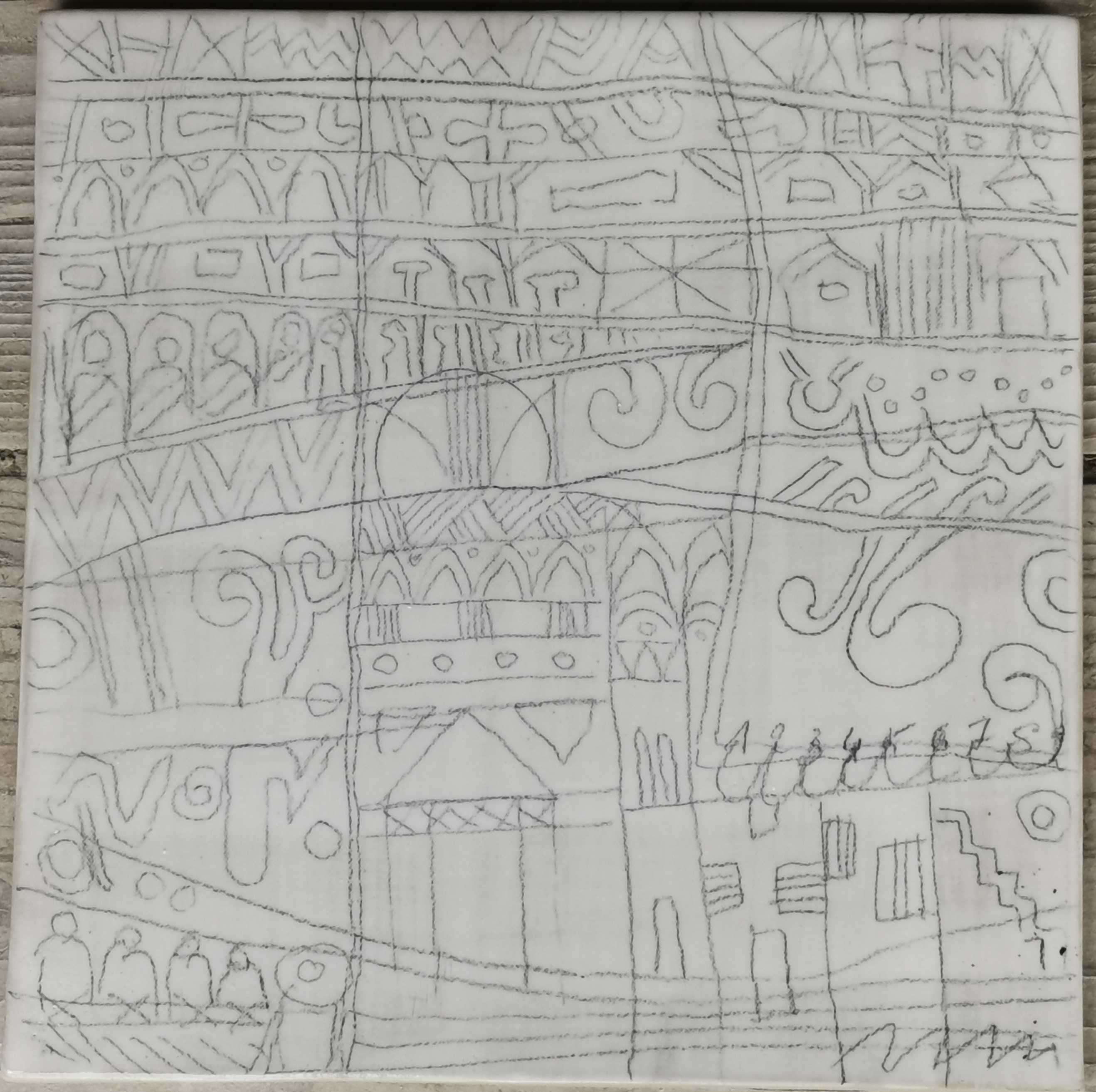 Partendo da lastre 20 x 20 cm sia biscottate che fresche , giocando con incisioni, riserve , matite e una serie di ingobbi più o meno diluiti .