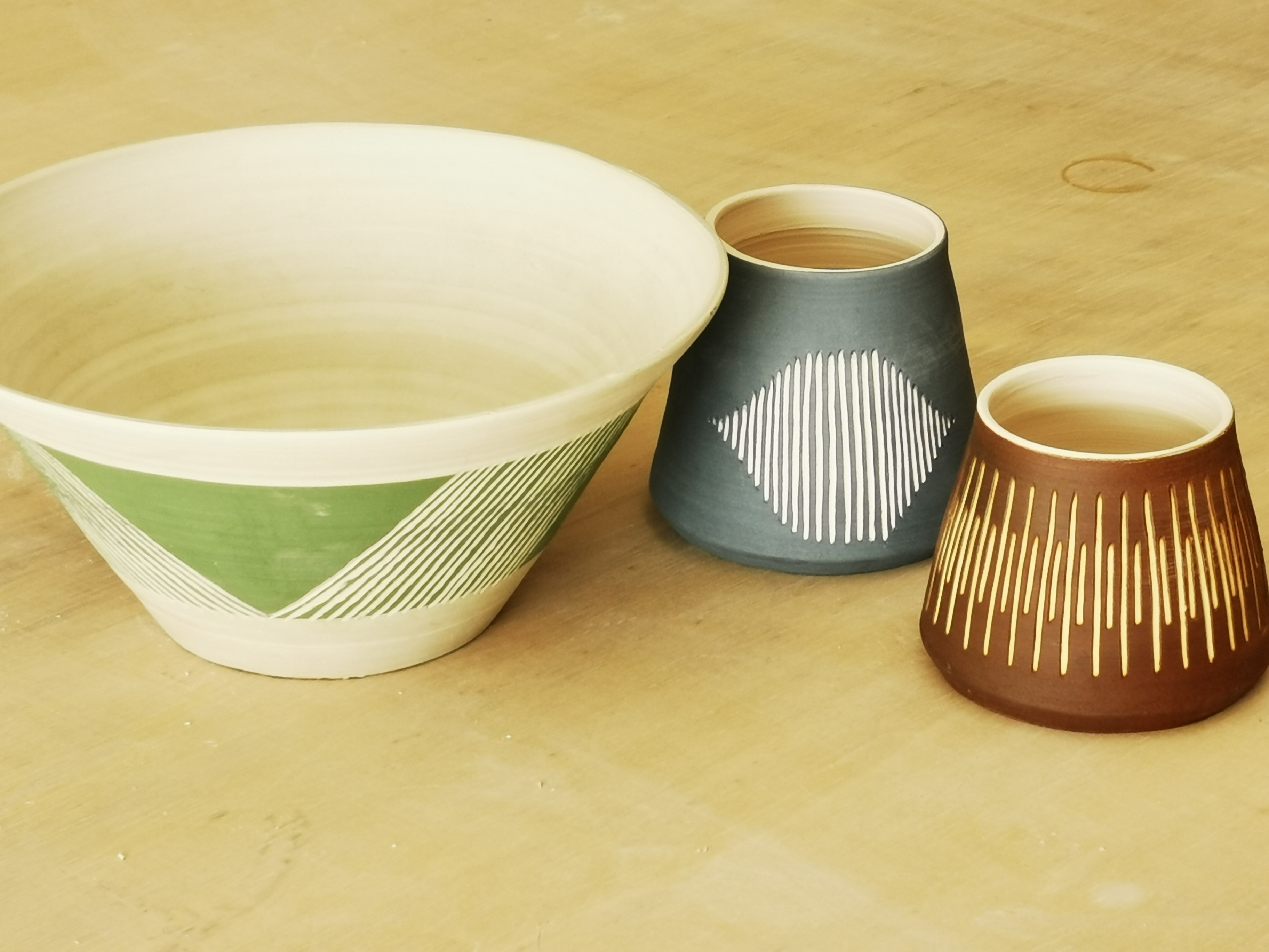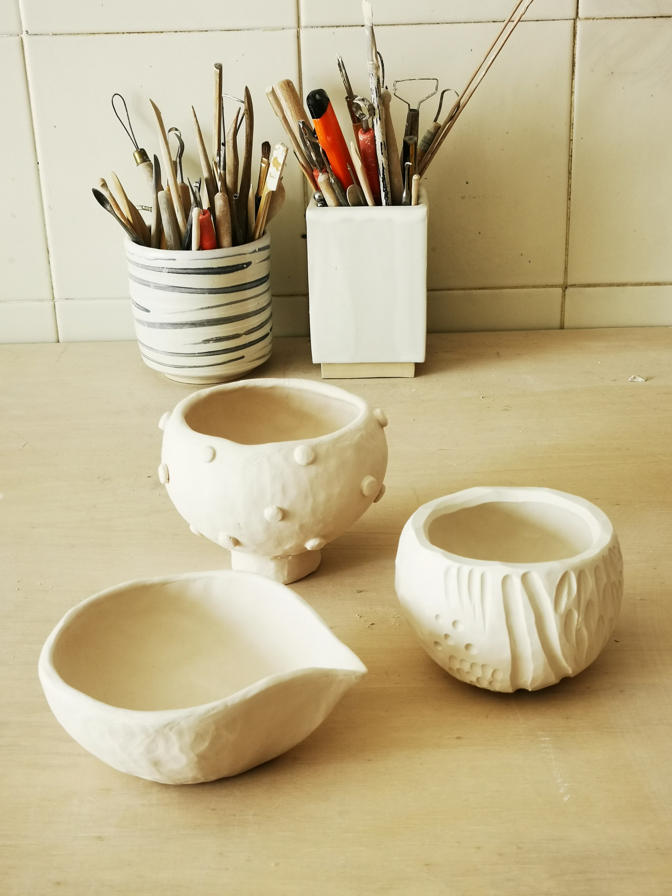 - Decorazione con ingobbi su pezzi crudi, aggiunte ,ritagli, sgrafito…